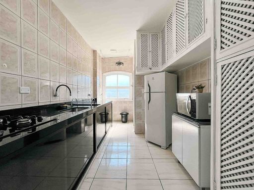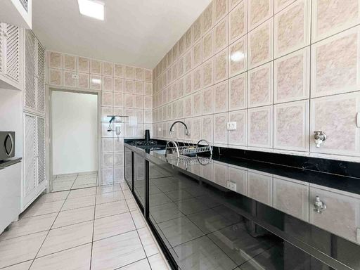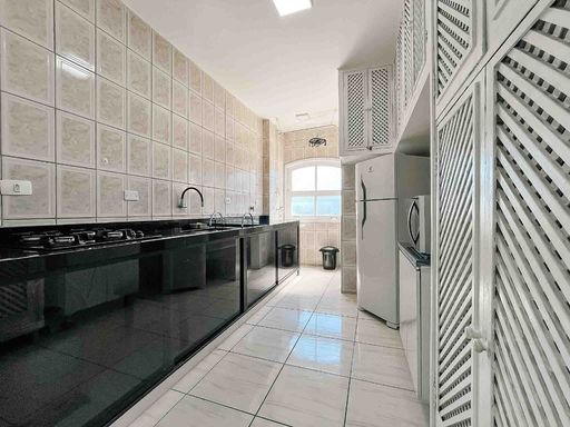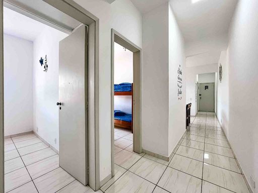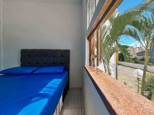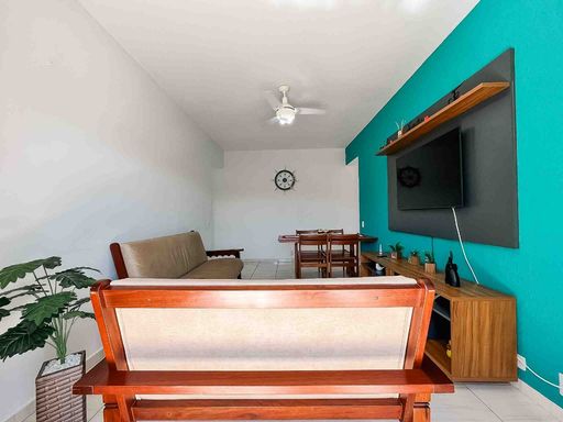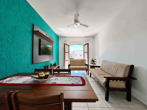 O apartamento fica no 1º andar, com acesso por escadas, mobiliado, possui 64m² privativos, distribuídos em uma sala para dois ambientes, com sacada pegando o sol da manhã e vista livre. Cozinha com área de serviço integrada e banheiro extra.